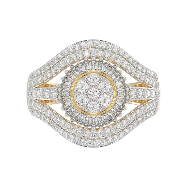 LADIES RING 1.00CT ROUND/BAGUETTE DIAMOND 10K YELLOW GOLD