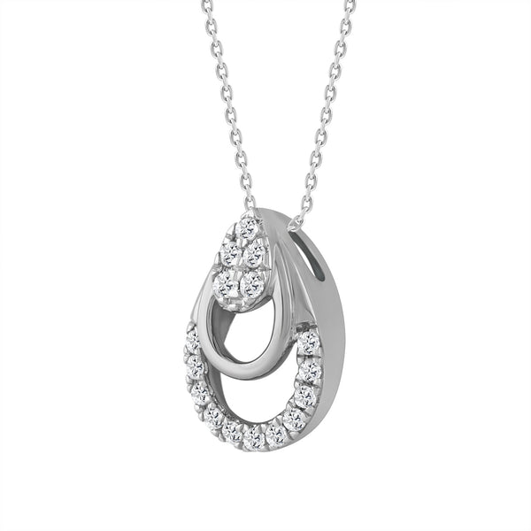 LADIES PENDANT WITH CHAIN 0.13CT ROUND DIAMOND 14K WHITE GOLD